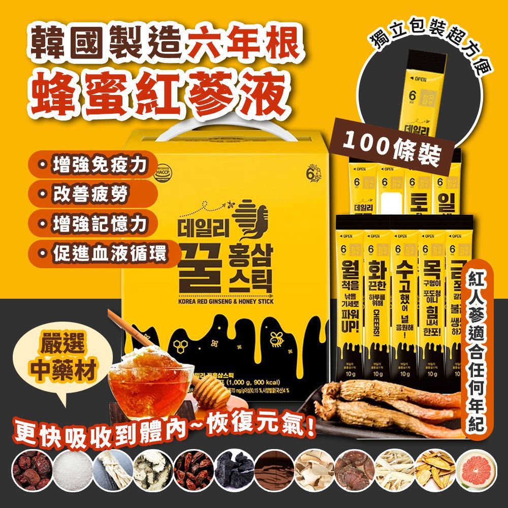 低至$1.66/1條👍韓國製造六年根蜂蜜紅蔘液100條裝